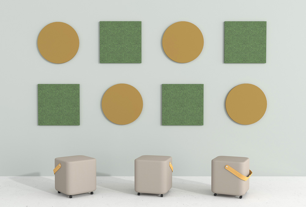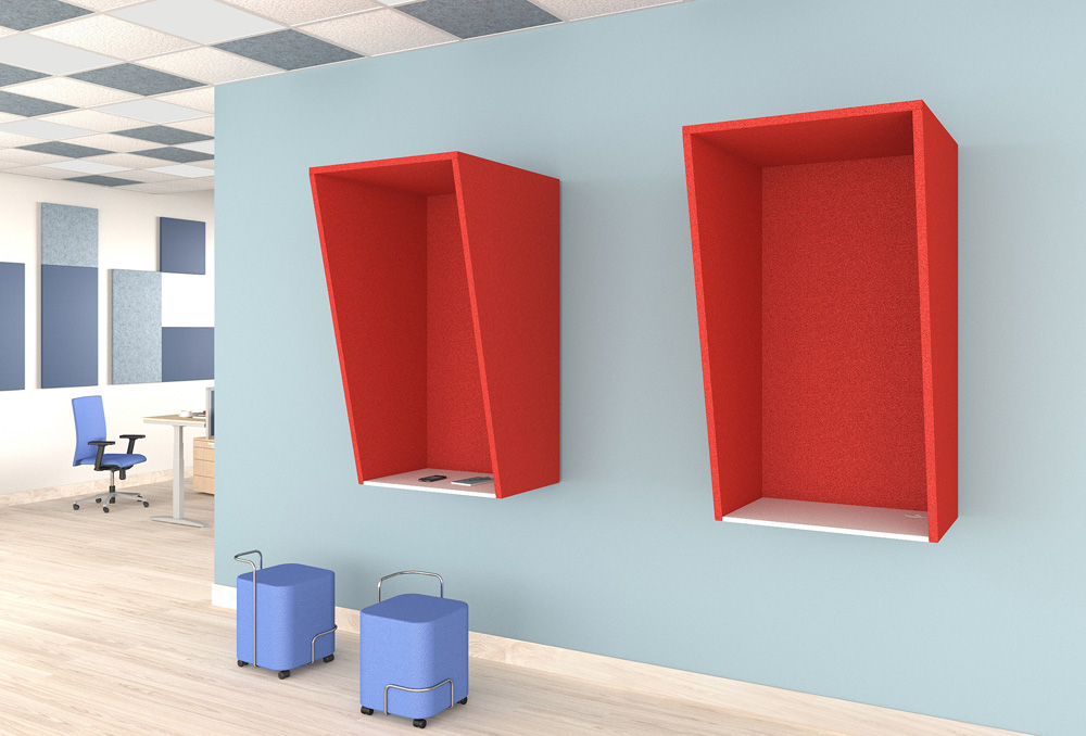 Β)Τα επιτοίχια ηχοαπορροφητικά διαχωριστικά διατίθενται σε διάφορα σχήματα και αναρτώνται είτε στον τοίχο μέσω κατάλληλων υλικών σύνδεσης είτε στην οροφή με ειδικό σύστημα κρέμασης.