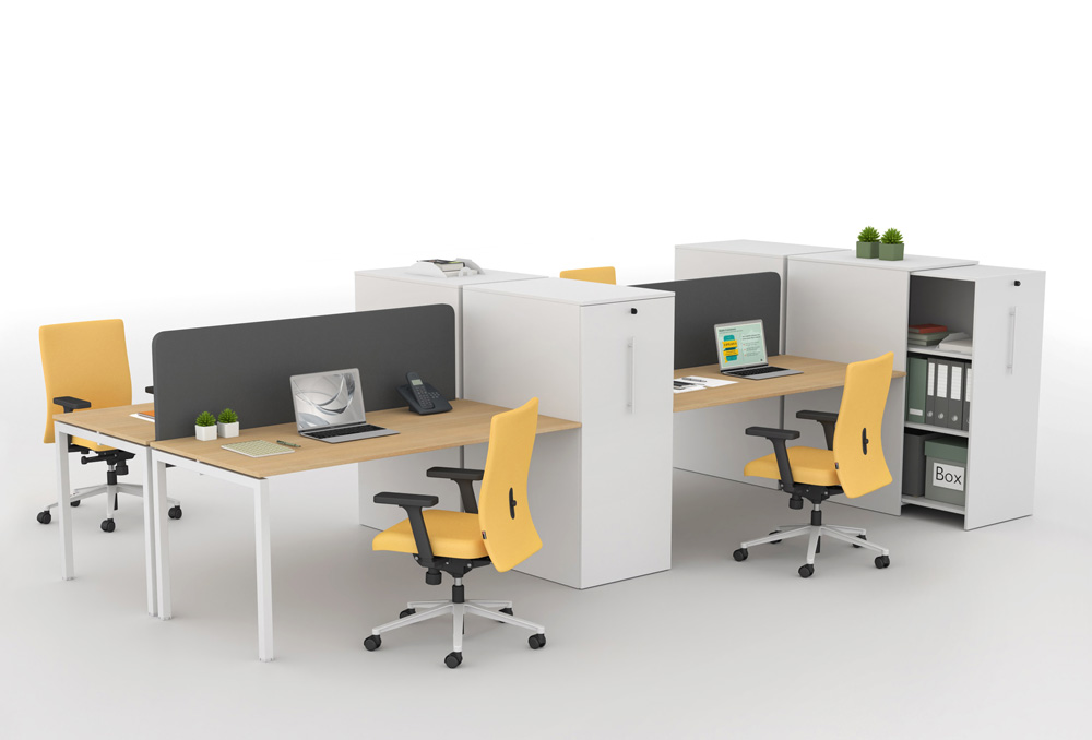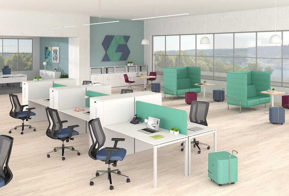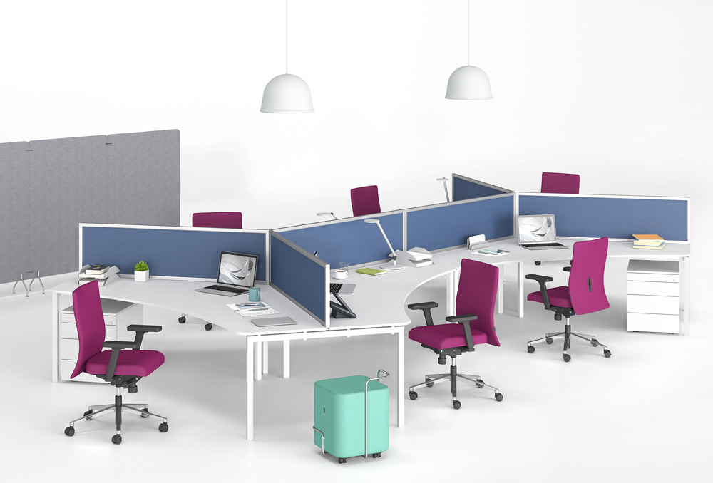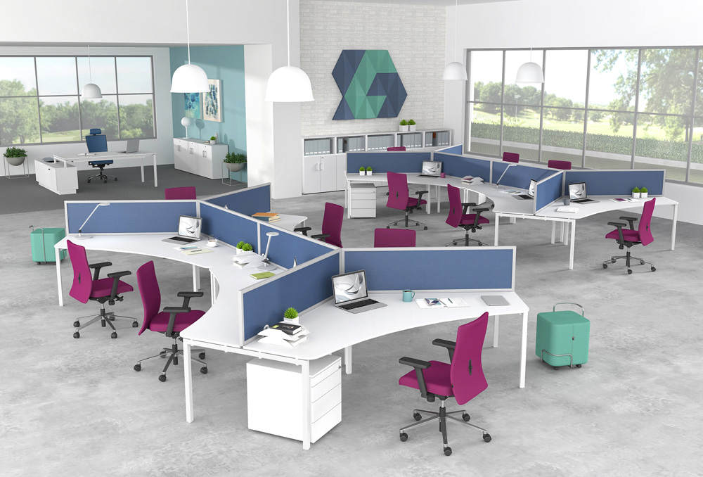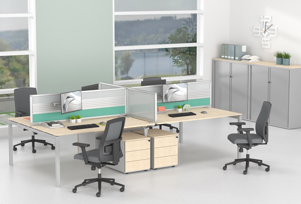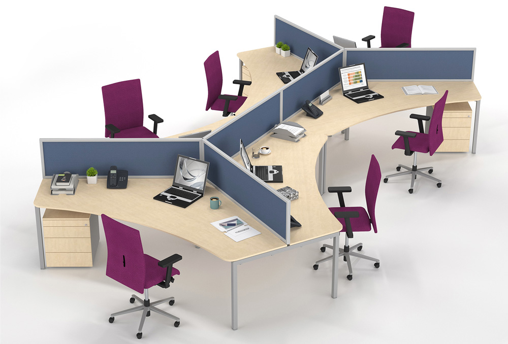 Οι σταθμοί εργασίας τοποθετούνται είτε σε σειρά είτε σε διάταξη σταυρού, όπου τοποθετούνται επικαθήμενα διαχωριστικά.