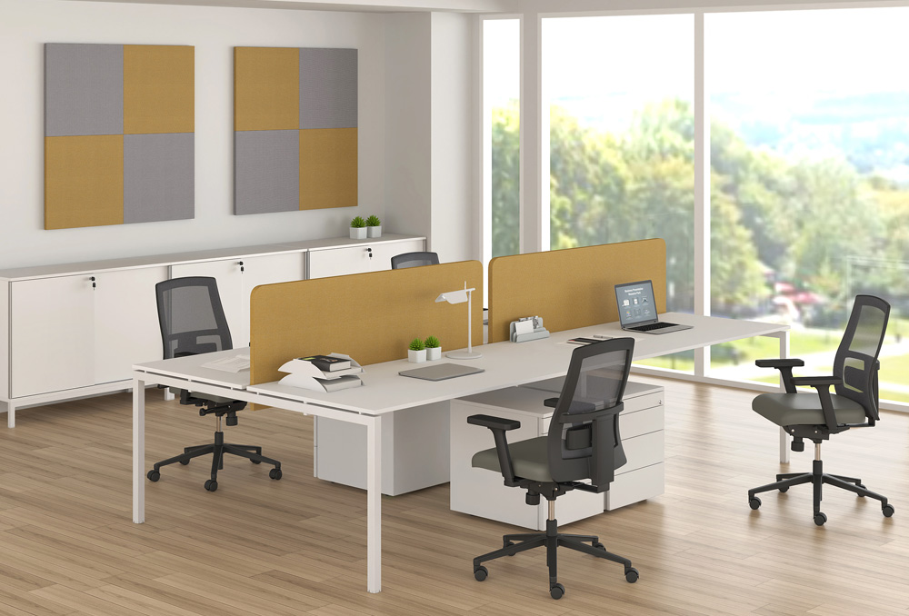 Η σειρά ΝΕΟ περιλαμβάνει γραφεία, τράπεζες συσκέψεων και σταθμούς εργασίας.